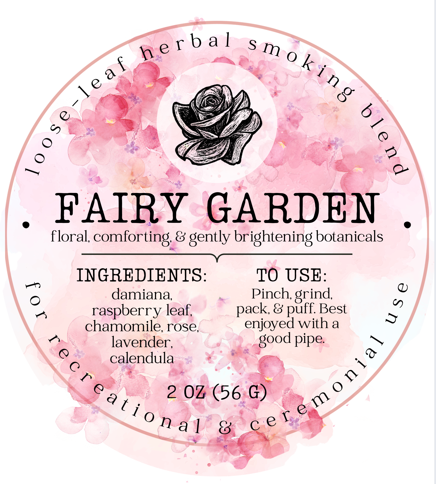 Suggested Use: Pinch, grind, pack, & puff. Best enjoyed with a good pipe. Use as a loose herbal smoking blend on its own or mixed with other compatible botanicals of your choice. Adjust proportions or texture to suit your preferred smoking style.