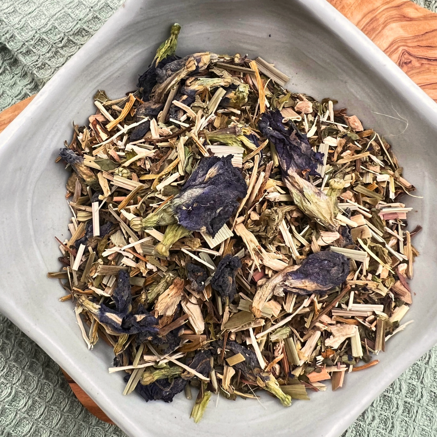 Bright Brain Tea is a thoughtfully crafted blend designed to promote mental clarity, focus, & balanced energy. Centered around adaptogenic roots & vibrant botanicals, this formula supports the body’s natural ability to handle stress while encouraging alertness & calm concentration. With its smooth, refreshing flavor & naturally uplifting hue, Bright Brain offers a gentle, sustained sense of clarity—perfect for mornings of inspiration or afternoons of mindful productivity.
