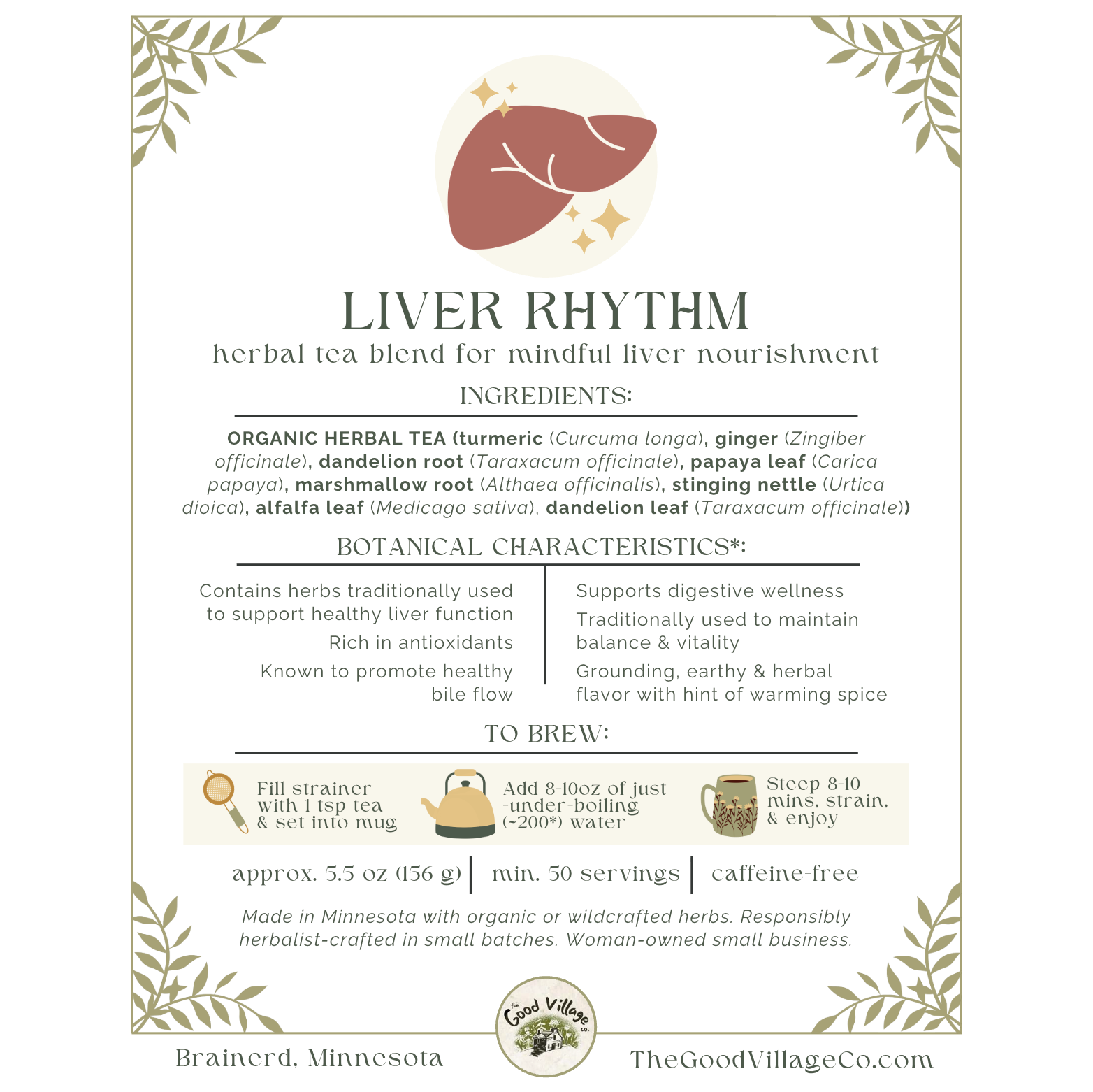 Production Notes: Responsibly hand-blended in small batches. Made in Minnesota with organic or wildcrafted herbs. Herbalist-crafted and packaged with care. Woman-owned small business.